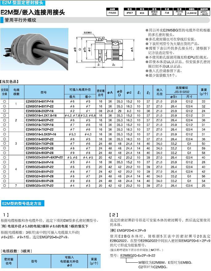 ·用以補充E2M5BG型的電纜外徑和根數(shù)的多孔密封接頭。